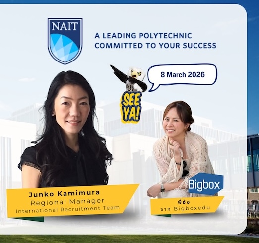 NAIT เป็นหนึ่งใน polytechnic ที่ดีที่สุดในแคนาดา มี Co-op 100% และ employment rate สูงถึง 93%! มาคุยกับเค้าโดยตรงได้เลยนะคะ จะได้ข้อมูลทุนการศึกษา, หลักสูตรยอดฮิต และโอกาสในการทำงานหลังจบ!